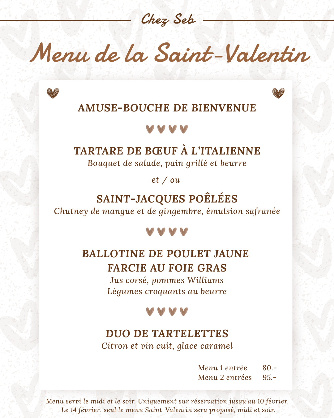 ❤️Menu de la Saint-Valentin - 14 février 2026